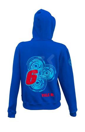 Chompa fleece.  Capucha forrada de tela wafle y cordón redondo.   Bolsillos canguro.  Puño y bajo de rib.  Cierre premium oculto.  Estampado de alto relieve.   Apliques.  Nombre bordado.
